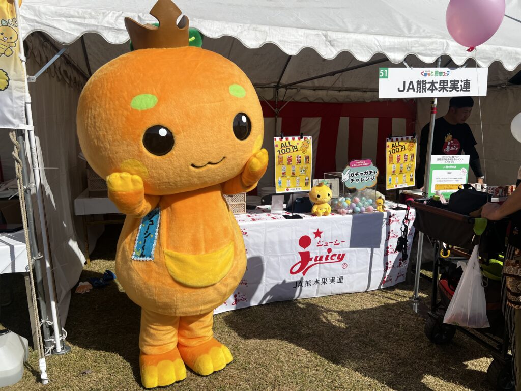 2025.11.11 お知らせ特集 2025くまもと農業フェアにジューシーくん出動しました 11月8日(土)・9日(日)に熊本県農業公園カントリーパークで開催された「2025くまもと農業フェア」にジューシーくんが出動しました! ジューシー商品の宣伝を行うジューシーくん 会場ではジューシー商品の出展販売を行い、ジューシーくんも商品の宣伝を行ってくれました。 よりぞうくんとジューシーくん コーすけくんとジューシーくん また県内の各連合会のキャラクターと一緒に子どもたちとも触れ合いました!