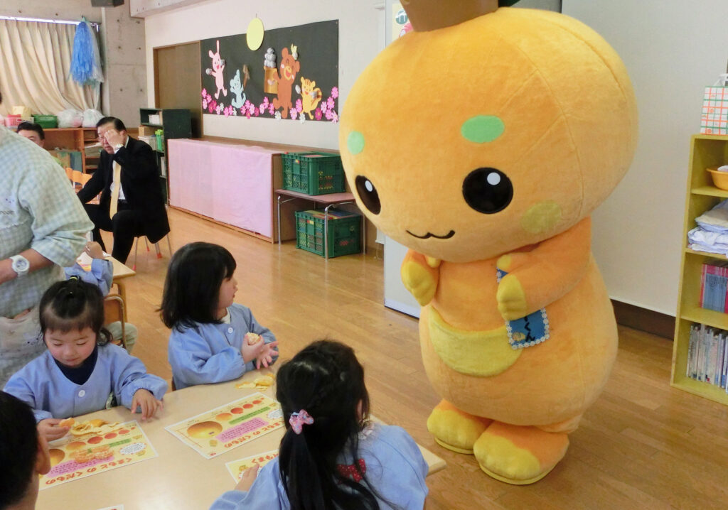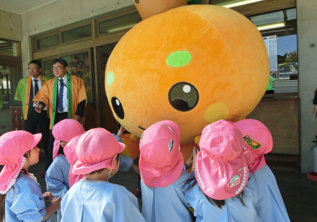 11月6日(木)、ジューシーくんが愛知県名古屋市の太閤幼稚園で開催された「熊本のミカン プレゼントセレモニー」に出動しました。