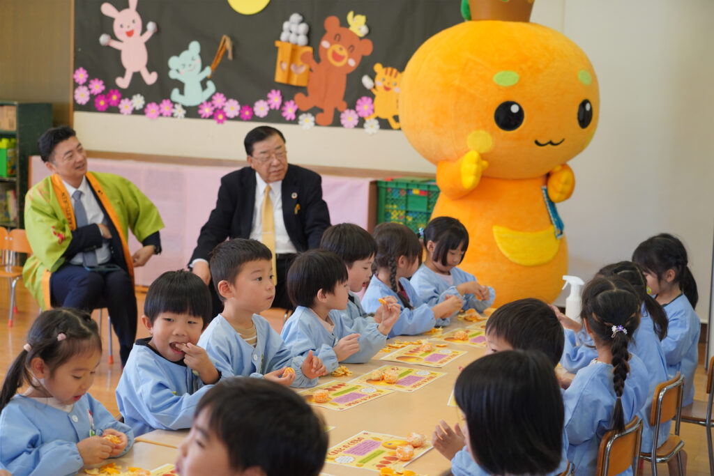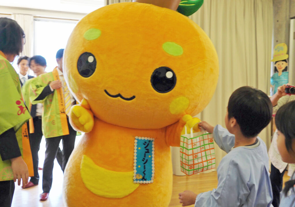 ジューシーくんが名古屋の幼稚園に熊本ミカンを届けました!