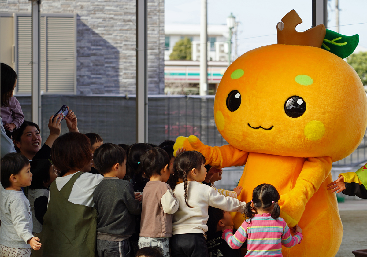 ジューシーくんが名古屋の幼稚園に熊本ミカンを届けました!